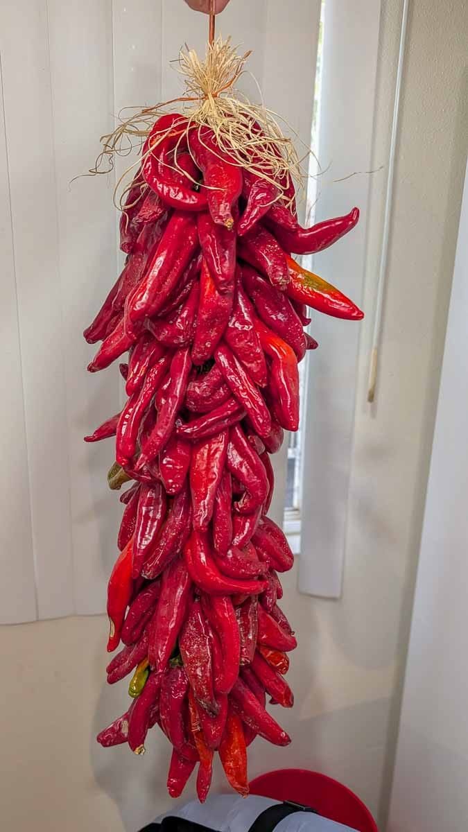 These 2 ft Hatch chile ristras are a great southwestern decoration, and work as a wonderful present too! The best part is that they are also edible! Ristras are a natural way to sundry chile and prevent it from being scavenged by birds or rodents. In case you want to make a red chile sauce, just reach for last year’s ristra! Just make sure you have a fresh new one so you keep your Southwestern decor while you enjoy your New Mexican flavor!